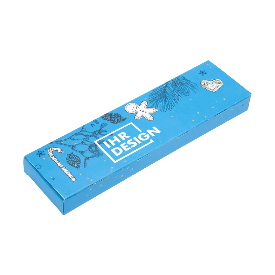 Lass deine Adventsbox im Querformat (ca. 210 x 20 x 59 mm) 1‑seitig in 4/0‑farbig CMYK drucken.