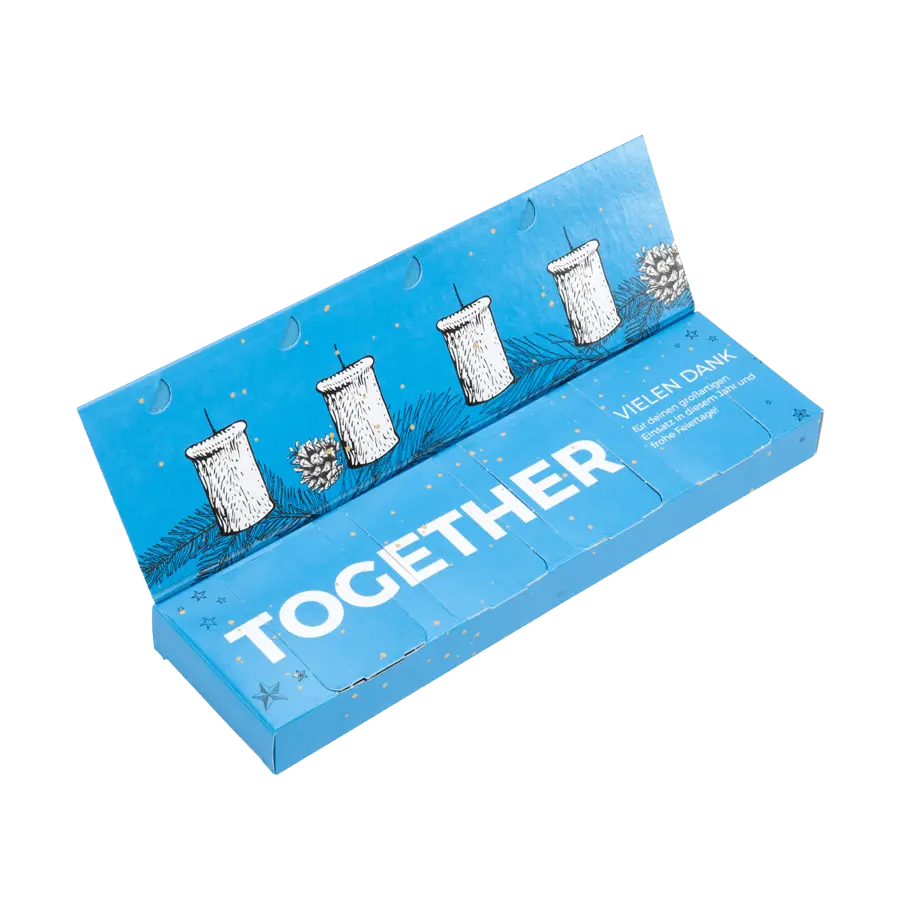 Ob für dein Weihnachtsmailing, als Give-away auf Events oder als festliche Überraschung im Büro – unsere Adventsboxen sind kompakt, individuell und einfach cool.